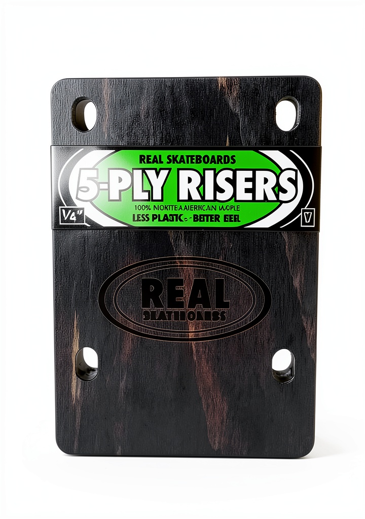 Real Skateboards 1/4″ riser pads are crafted from durable North American maple to prevent wheel-bite and enhance your board’s ride height. These risers are specially shaped for Venture trucks, ensuring a secure fit and improved skateboarding control. Perfect for skaters of all levels looking to upgrade their setup for smoother, more responsive rides.