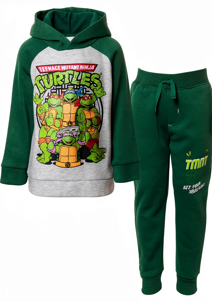 - Soft, durable hoodie and pants set with official TMNT graphics for playful style