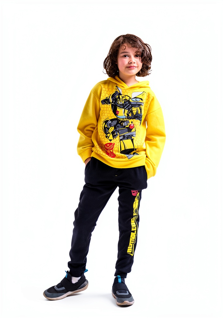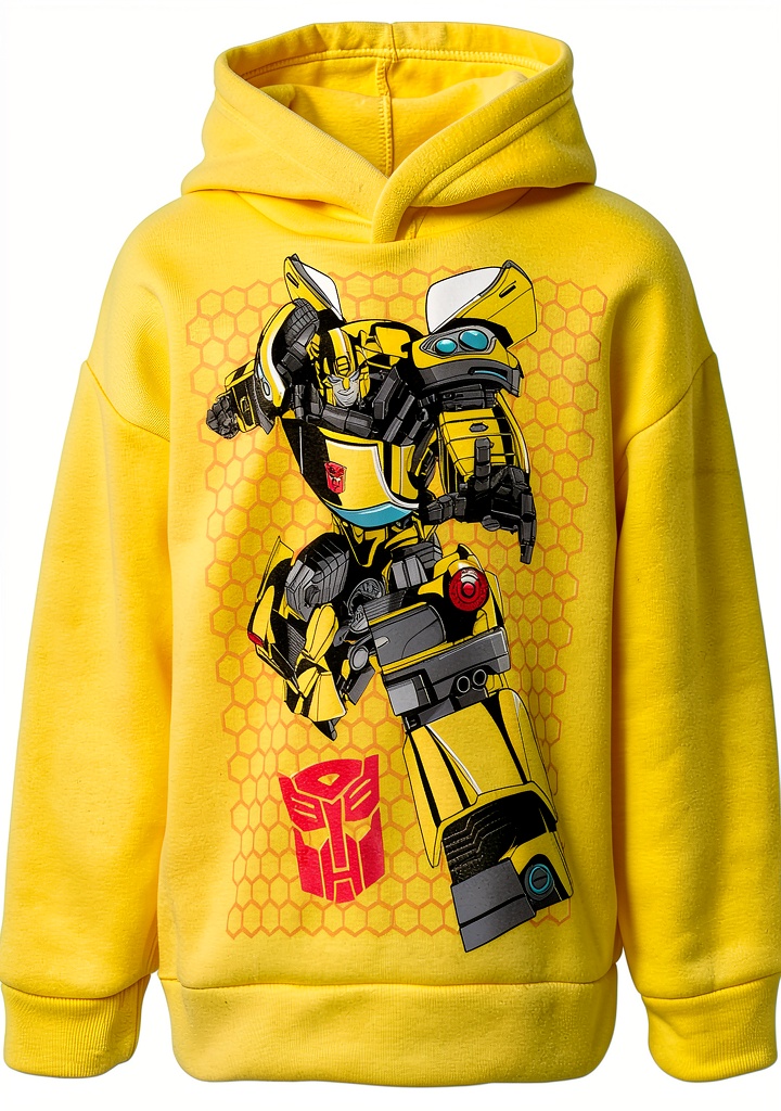 This officially licensed Transformers hooded sweatshirt and pants set is designed for little boys, combining comfort and style. Made from soft, safe materials that are gentle on kids’ skin, it includes a long-sleeve graphic hooded sweatshirt with a pull-on closure, ribbed cuffs, and a comfortable hood lining, paired with matching pants featuring an elastic waist and ankle cuffs for a secure fit. Key specifications include model number P-B2P7320TF, manufacturer Bentex Group, Inc., and availability in sizes from 2T to 14-16 with color options like Yellow/Black and Red/Blue. The durable construction ensures it withstands active play while maintaining its vibrant, screen-printed Transformers designs.
